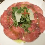 After a wonderful day at sea we sat down to the ship’s Italian restaurant for Valentine’s Day dinner. This was the first carpaccio appetizer I saw when I checked the restaurant menus after boarding, but it was the third I tasted on the trip.